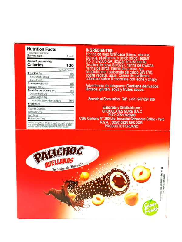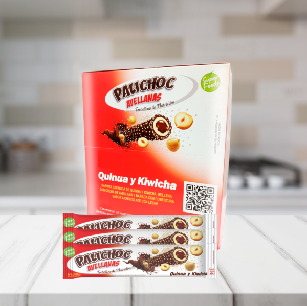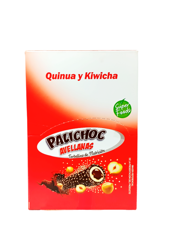 Palichoc Avellanas, Torbellino de nutrición. Es un producto con aporte nutricional ya que contiene 3 de los superfoods peruanos más conocidos del mundo: Quinua, Kiwicha y Avellanas con la que se manufactura el delicioso relleno.